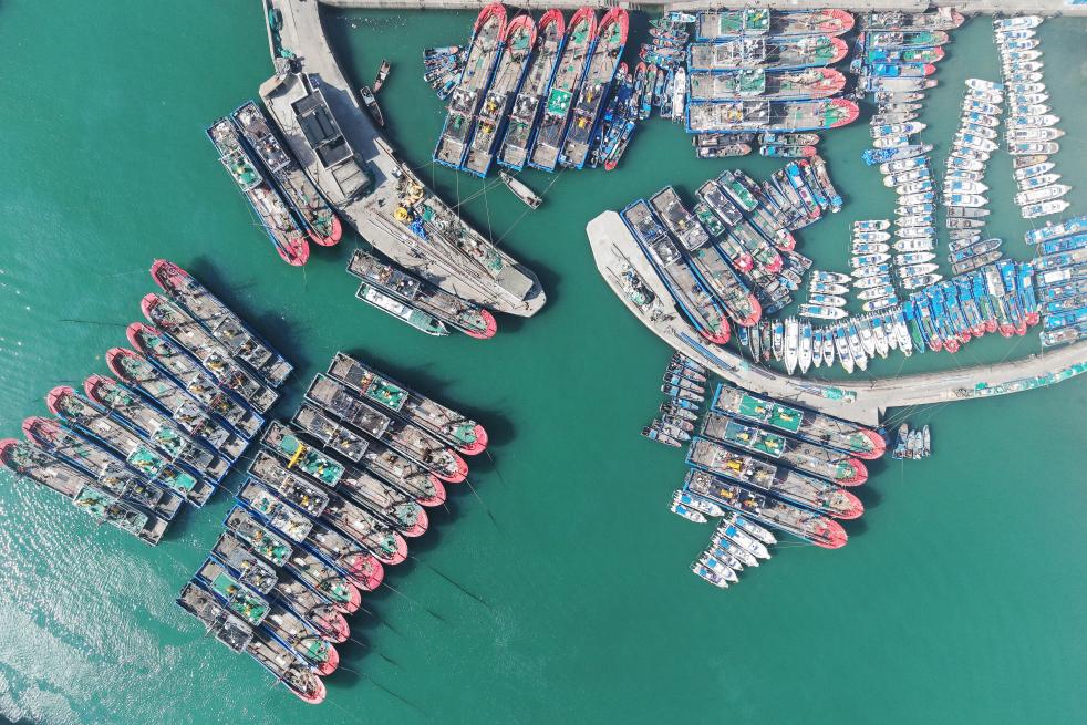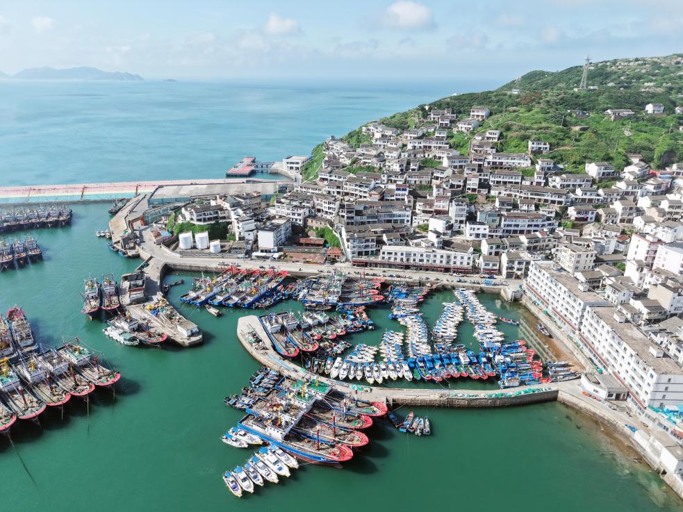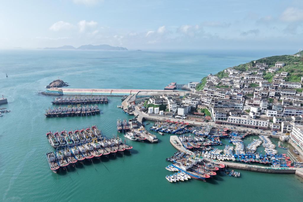 以上圖片:2025年6月18日拍攝的浙江省舟山市嵊泗縣嵊山漁港一角。(無人機照片)CICPHOTO/邢守秒 攝