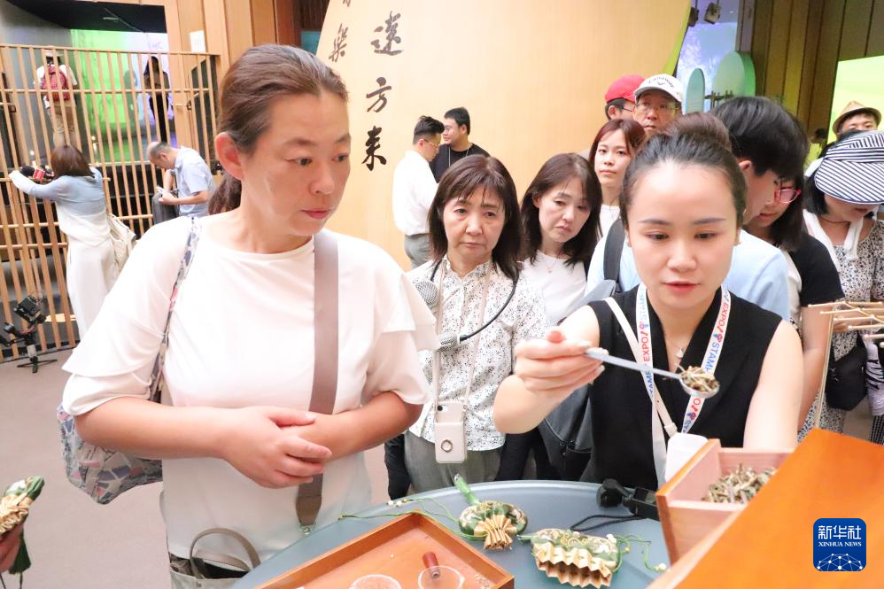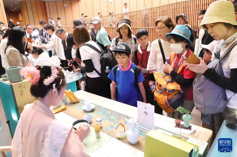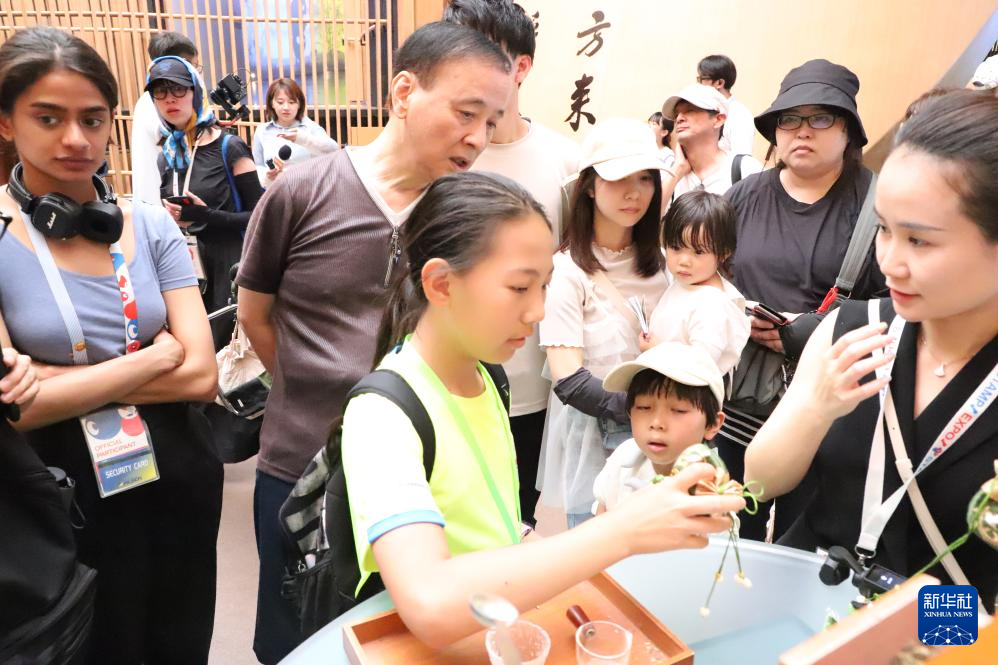 7月12日,人們在日本大阪世博會中國館“浙江周”活動上觀看宋代點茶展示。