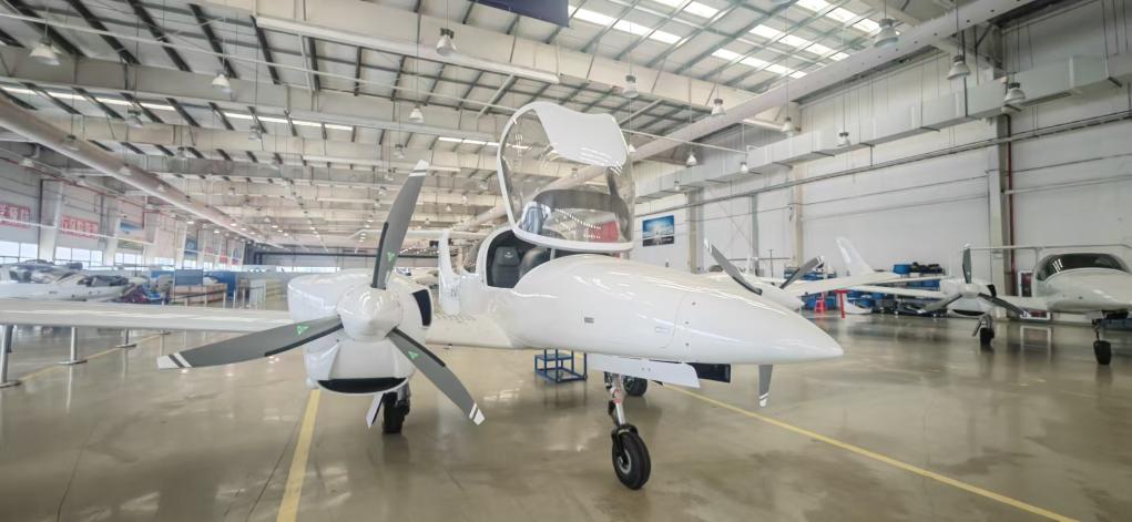 走進中電科蕪湖鉆石飛機制造有限公司,記者看到,一架架剛下線的飛機“整裝待發”,流線型的機身在燈光下熠熠生輝。