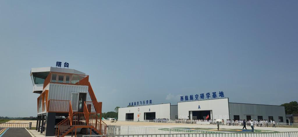 乘坐小型固定翼飛機穿越藍天白云,從高空看低空感受江城的美麗風光……在東方飛谷航空飛行營地,游客們開啟沉浸式“天空之旅”。從高空俯瞰,長江之畔,山水之間,一座由航空小鎮、飛行營地、通航機場、低空智聯系統等共同構建的“天空之城”初露崢嶸。