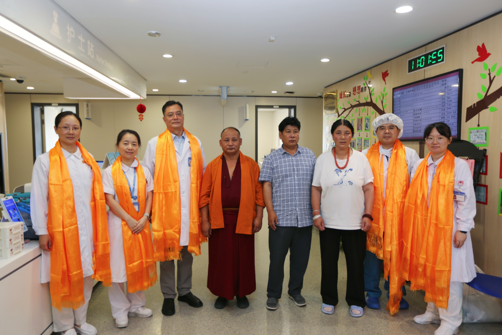 出院前夕,多吉和爺爺奶奶特意向醫護人員們送上了準備多日的金黃色哈達?!爸x謝白衣天使們的幫助,希望以后我能有機會走到外面的世界,努力學習工作,改善父母及爺爺奶奶的生活,就像幫助我的白衣天使們一樣幫助更多的朋友?!倍嗉f。一旁的爺爺奶奶雖然無法用漢語和大家交流,但也雙手合十向每一位幫助過多吉的人表達感謝。前來協助聯系和翻譯的阿卡還將一封情真意切的感謝信送到了醫護人員的手上。