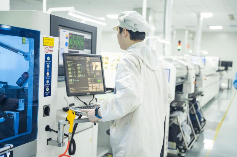 2025年8月13日,合肥恒新基電子傳感器生產線上,工人正在檢測設備。(肥東縣委宣傳部供圖)