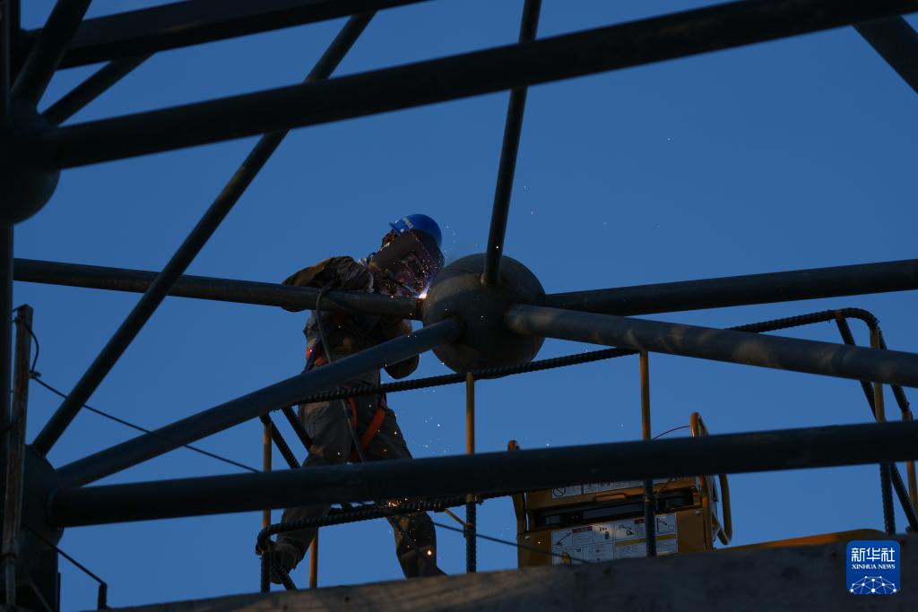 10月14日,建設者在衢麗鐵路東西巖站站房候車廳鋼網架上進行焊接作業。