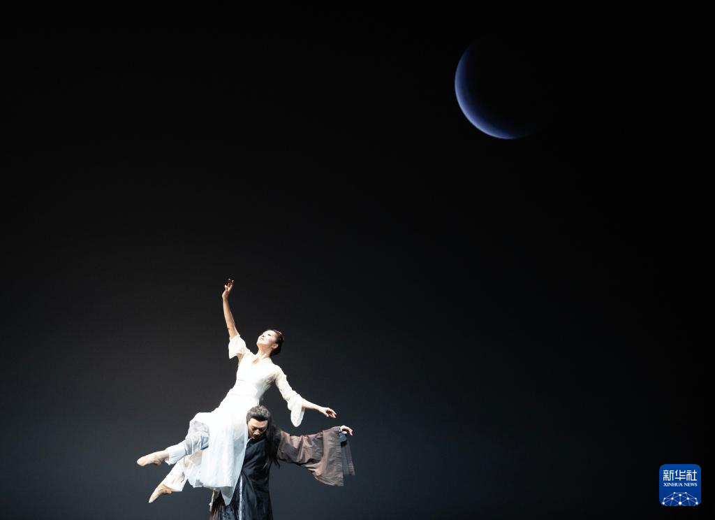 10月25日晚,北京舞蹈學院青年舞團演員在新市古鎮專場演出中表演《水墨孤鶴》。