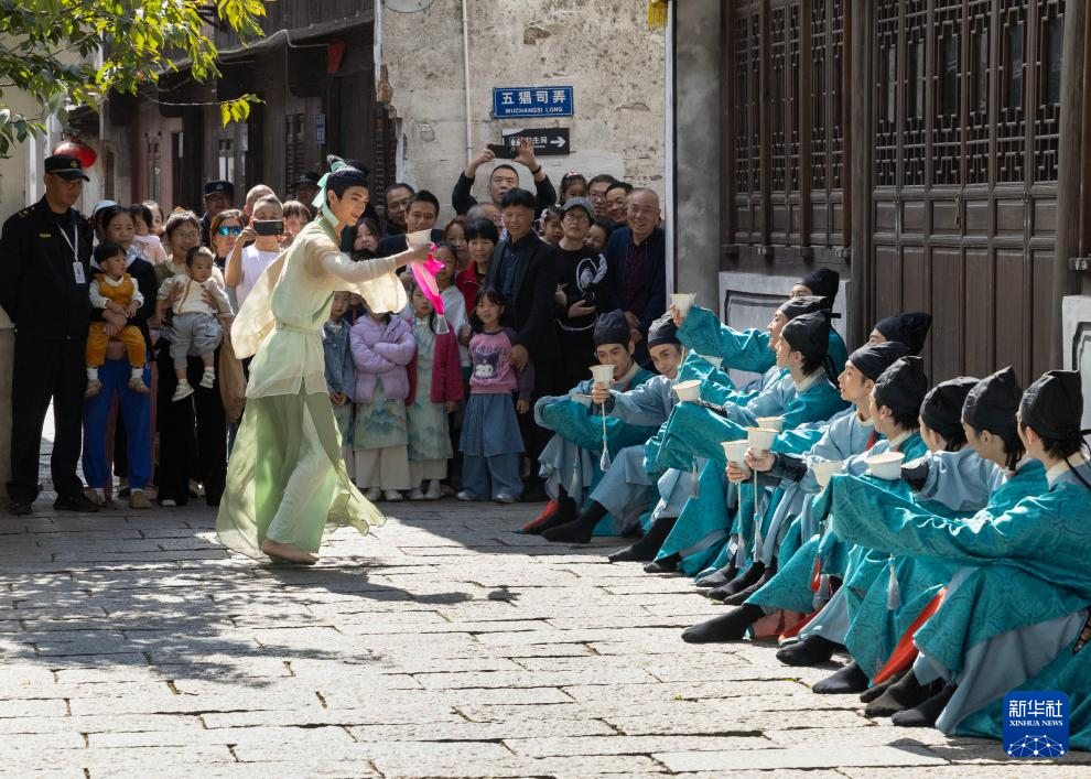 10月26日,浙江歌舞劇院演員在新市古鎮表演舞蹈《鹿鳴宴》。